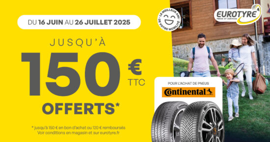 Du 16 juin au 26 juillet 2025, profitez d’une offre exceptionnelle pour l’achat de pneus de la marque Continental. Détail […]